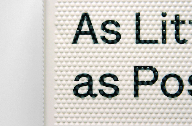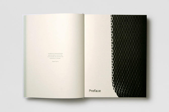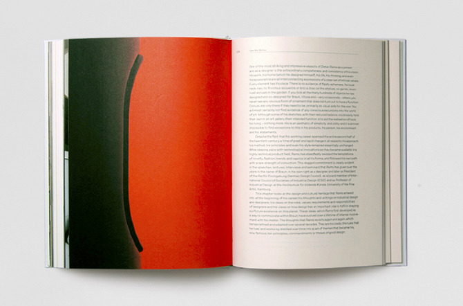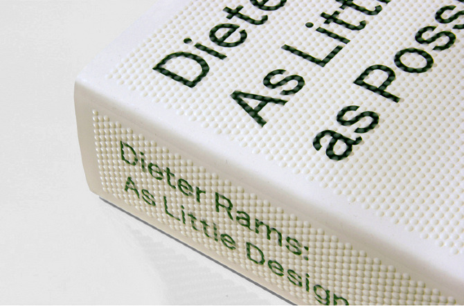 Dieter Rams: As Little Design as Possible — A monograph on the influential product designer Dieter Rams. The fascinating life story of Dieter Rams is laid out in a classic reading book format, with a margin references to corresponding images. Alongside the historic sketches, prototypes, and product shots of Rams's work, are three sets of photographic portfolios taken at Rams's house in Kronberg, and at the Braun Archive. The cover is printed in a special silk screen technique with raised transparent ink that gives a tactile feel to the design detail. The font