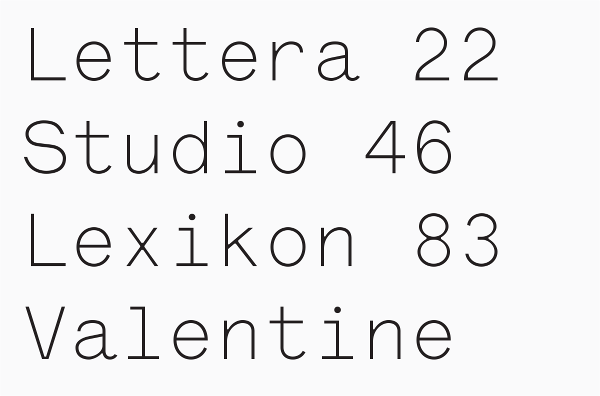 Dieter Rams: As Little Design as Possible, and is used throughout the book exclusively. Following the release of Lettera, users expressed a strong demand for a non-monospaced text version of the font. Lettera-Txt retains the freshness and unique appearance of Lettera, and functions extremely well in long small texts, as well as large display sizes. Lettera-Txt is available in six cuts, as an OpenType Standard and Pro, including stylistic sets, alternate glyphs and numerals sets, and extended Latin support, including Cyrillic. A Black weight will be available soon. For more information on Lettera-Txt, please see