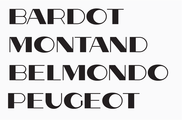 Peaugeot Headlines — A display font, first drawn for a headline on the cover of I.D. Magazine’s November 2006 issue. The font is based on the six different letters of an old Peugeot logo, and has been expanded and reshaped in a rather less geometric style. The Character of the Peugeot font begins with the letter ‘O’. The extremely shifted balance is the element that is repeated throughout the entire glyph repertoire.