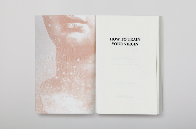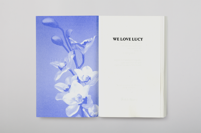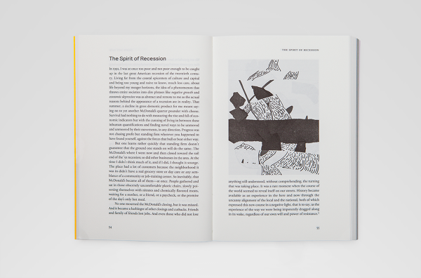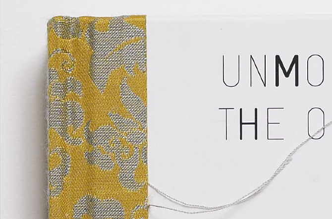 Gravur–Condensed) - mixed randomly in four different weights. Threads from the spine’s cloth that wraps around the left edge of the cover, were purposely left out hanging to give the book a rough and unfinished touch.