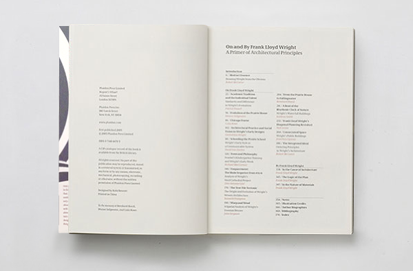 On and By Frank Lloyd Wright — A book containing 14 essays about Frank Lloyd Wright and 3 essays by him. A special version of the typeface