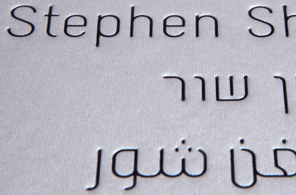Gravur Condensed in English, Hebrew, and Arabic.