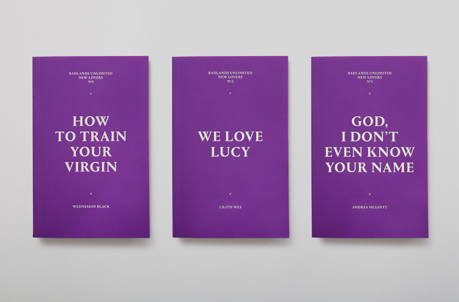 Badland Unlimited we said it's been on the list of briefs we've been waiting for. These soft-touch debossed paperbacks, the size of a semiotexte book are rooms for provocative yet accessible works by emerging writers in the genre of erotica.