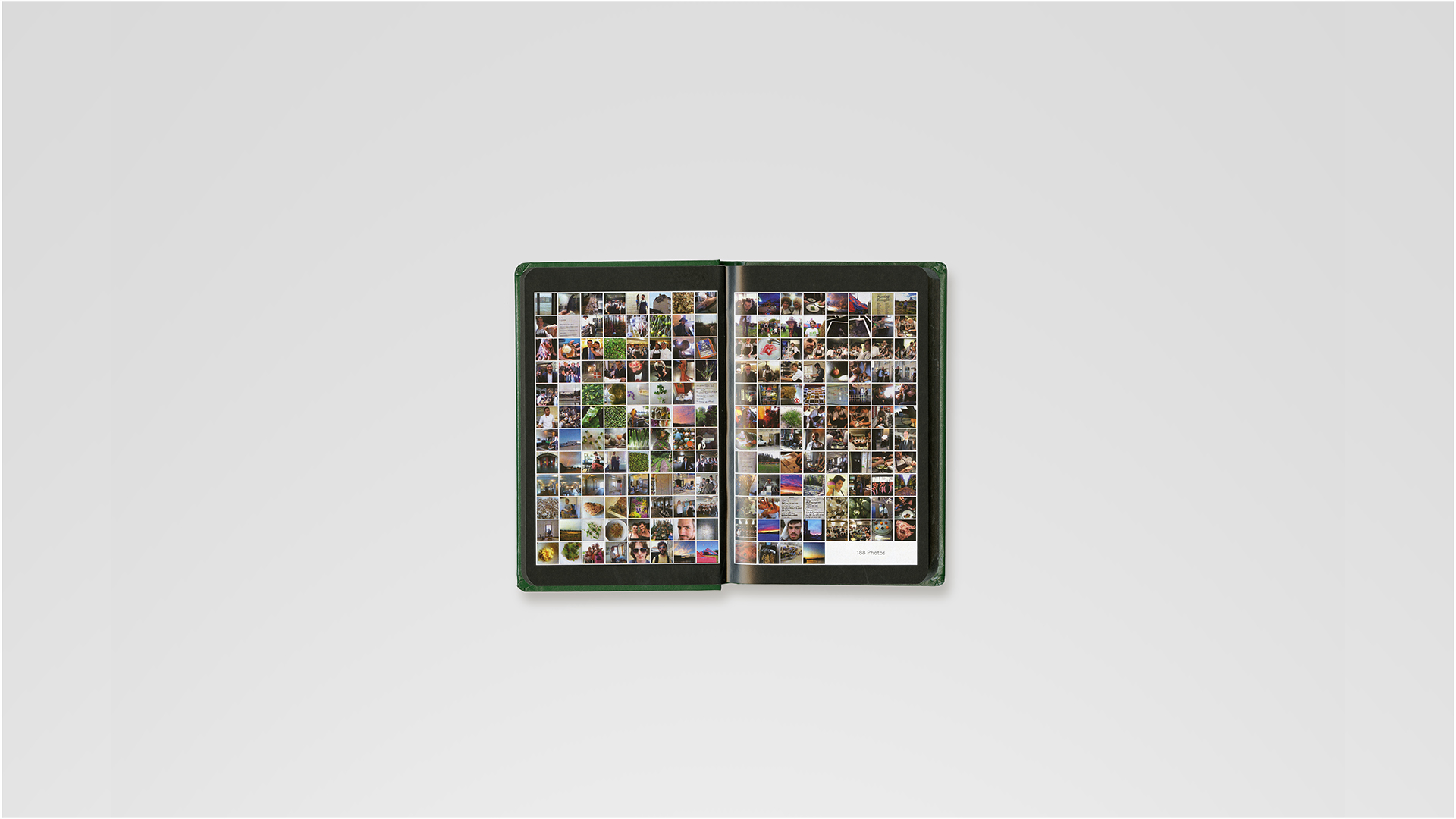 The snapshots book — a small format, roughly the size of a smartphone, containing 188 photos, laid out in a way that forces the viewer to rotate the little book from vertical to horizontal format, reflecting the browse through a smartphone photo library.